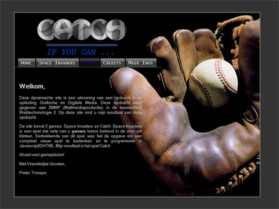 Dit is een dynamische site met daarop een zelfgemaakt spel in javascript: nl. Catch => Ga naar Catch |